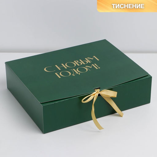Цена за 2 шт. Складная коробка подарочная С новым годом, тиснение, зеленый, 31 24,5 9 см