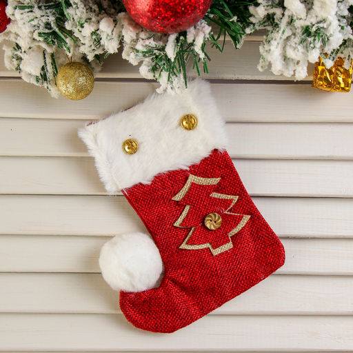 Носок для подарков "Помпошка" ёлочка, 11х16 см, бело-красный