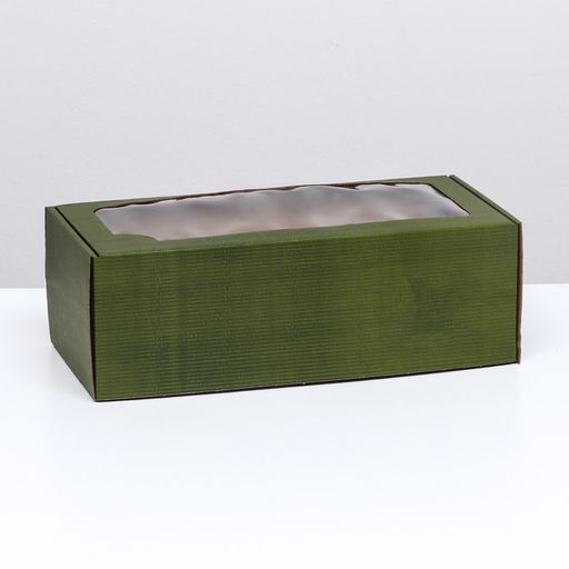 Цена за 5 шт. Коробка самосборная, с окном, хаки, 16 х 35 х 12 см