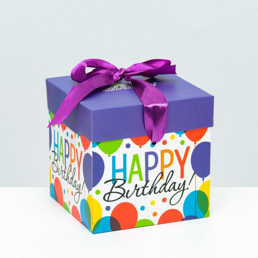 Цена за 12 шт. Коробка Самосборная "С днем рождения" фиолетовая 10х10х10 см