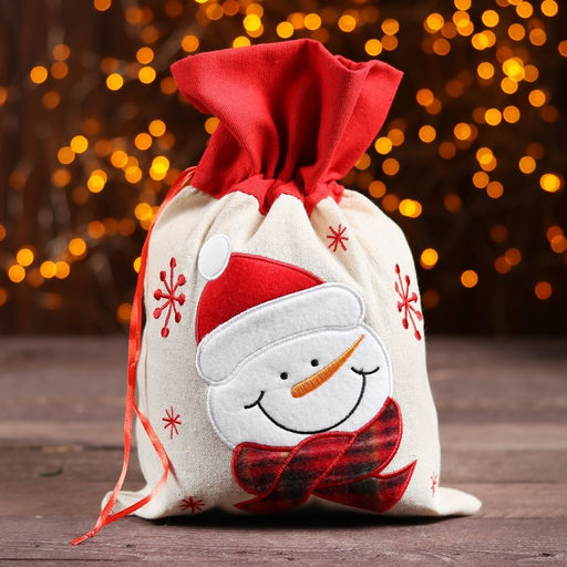Мешок для подарков Снеговичок и снежинки, на завязках, 29 22 см