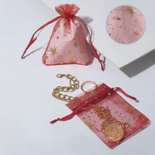 Цена за 100 шт. Мешочек подарочный "Вспышки", 7x9, цвет розовый с золотом