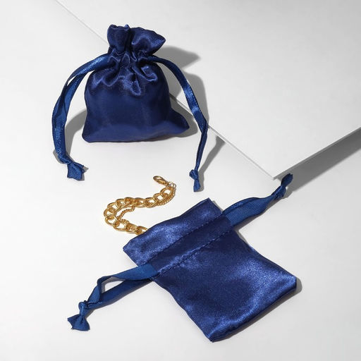Цена за 50 шт. Мешочек подарочный атласный с лентой, 7 х 9см, цвет тёмно-синий