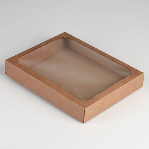 Цена за 5 шт. Коробка сборная, крышка-дно, с окном, крафт, 26 х 21 х 4 см