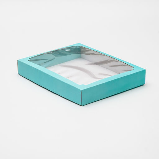 Цена за 5 шт. Коробка сборная, крышка-дно, с окном, голубая, 26 х 21 х 4 см