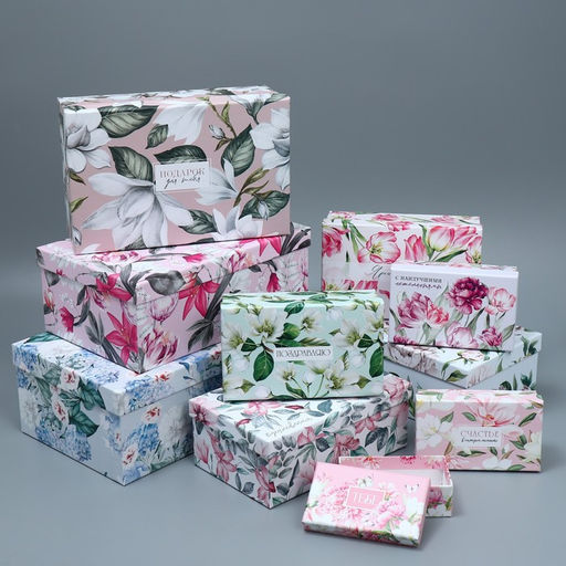 Набор подарочных коробок 10 в 1 Цветочный сад, 12 7 4 - 32.5 20 12.5 см