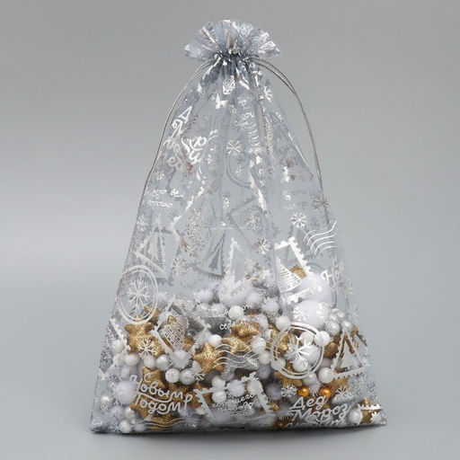 Цена за 20 шт. Мешочек подарочный органза Хорошего НГ, 20 х 30 см +/- 1.5 см