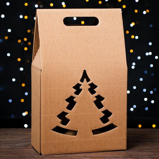 Подарочная коробка под бутылки "Сумка с ёлкой", бурая, сборная, 24 х 13.5 х 40 см