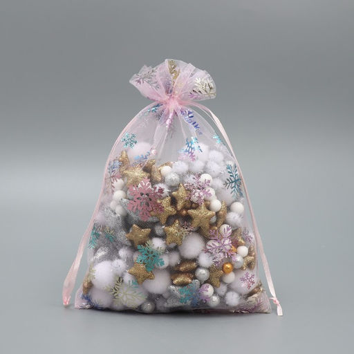 Цена за 5 шт. Мешочек подарочный органза Снежинка, голография, органза,16 24 см +/- 1.5 см