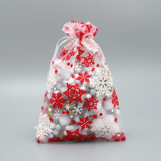 Цена за 5 шт. Мешочек подарочный органза Новогодний танец, снежинки, 16 24 см +/- 1.5 см