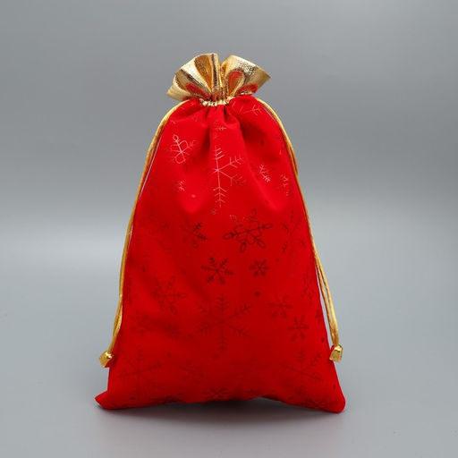 Цена за 5 шт. Мешочек подарочный замша Поздравляю от души, снежинки, тиснение, 20 х 30 см +/- 1.5 см