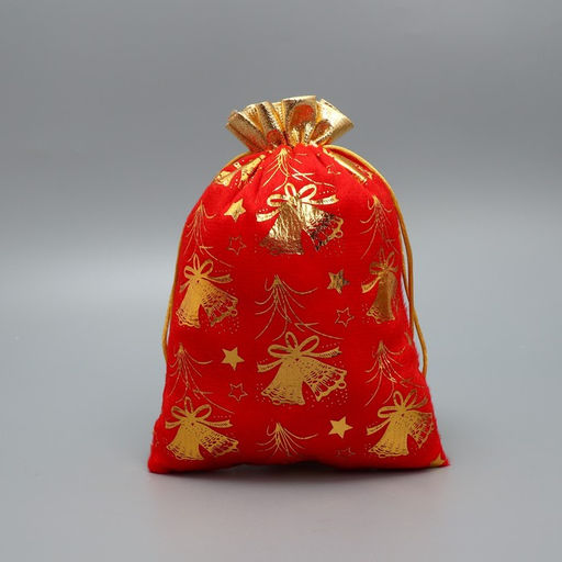 Цена за 5 шт. Мешочек подарочный плюш Золотые фейерверки, колокольчики, тиснение, 16 24 см +/- 1.5 см