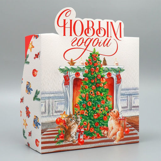 Коробка складная С Новым годом, камин, 25 х 25 х 10 см
