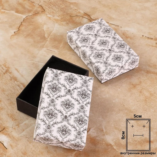 Цена за 6 шт. Коробочка подарочная под серьги/кулон/кольцо "Узоры графские", 8x5, чёрно-белый