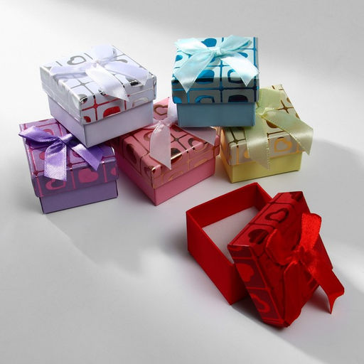 Цена за 6 шт. Коробочка подарочная под серьги/кольцо "Сердца", 5x5 (размер полезной части 4,5х4,5см), цвет МИКС
