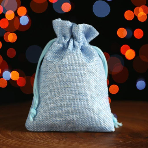 Цена за 10 шт. Мешочек подарочный из холщи, голубой, 10 х 14 см