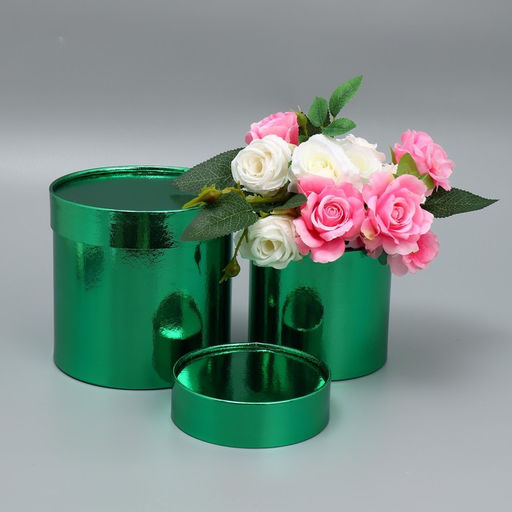 Набор коробок 2в1 круглые Однотонный, зелёный металлик, 12 х 12, 15 х 15 см
