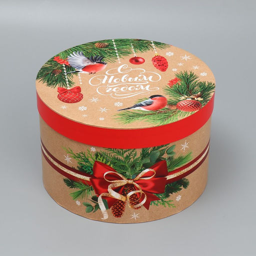 Коробка подарочная круглая Новогодняя ботаника, 14.5 22.6 см