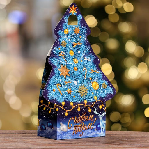 Цена за 5 шт. Подарочная коробка "Ёлка "Синий иней", 15,7 х 9,5 х 22,5 см