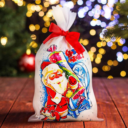 Цена за 5 шт. Мешок новогодний "Дед Мороз с хлопушкой", атлас, полноцветная печать, 21х35 см