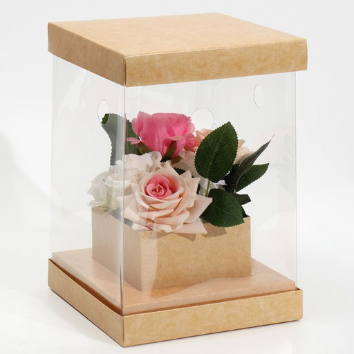 Коробка для цветов с вазой и PVC окнами складная Крафт, 16 х 23 х 16 см