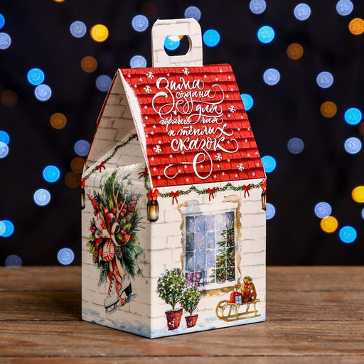 Цена за 5 шт. Подарочная коробка "Домик Тёплая сказка",9,1 х 7 х 15,7 см