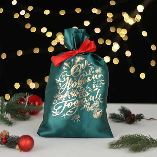 Цена за 5 шт. Мешок "С новым годом!", ёлка и игрушки,зелёный, 20 х 30см