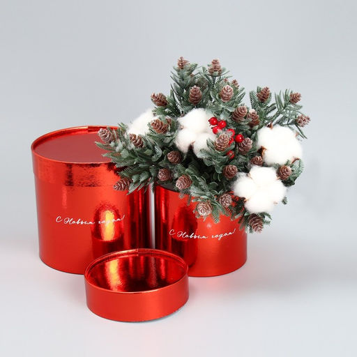 Набор коробок 2в1 круглые С Новым годом!, красный металлик, 12 х 12, 15 х 15 см