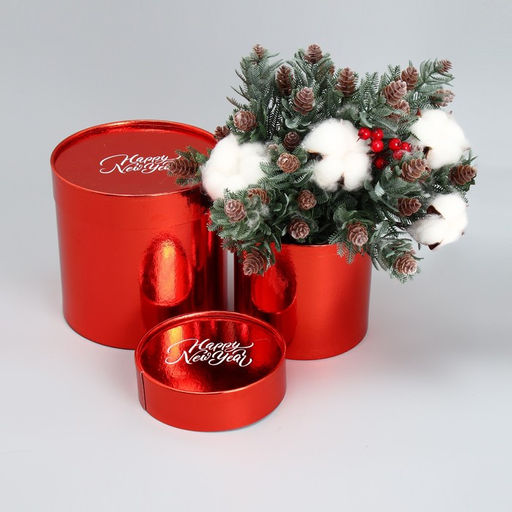 Набор коробок 2в1 круглые Happy New Year, красный металлик, 12 х 12, 15 х 15 см
