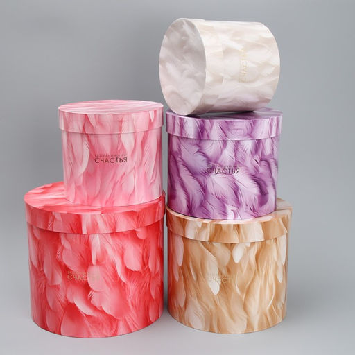 Набор шляпных коробок 5 в 1 Перья, 13 14 19.5 22 см