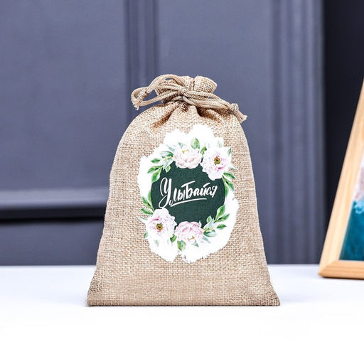Цена за 5 шт. Мешок подарочный с термонаклейкой "Улыбайся" 13 x 18 см