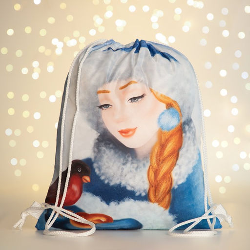 Мешок новогодний на шнурке, цвет голубой/разноцветный