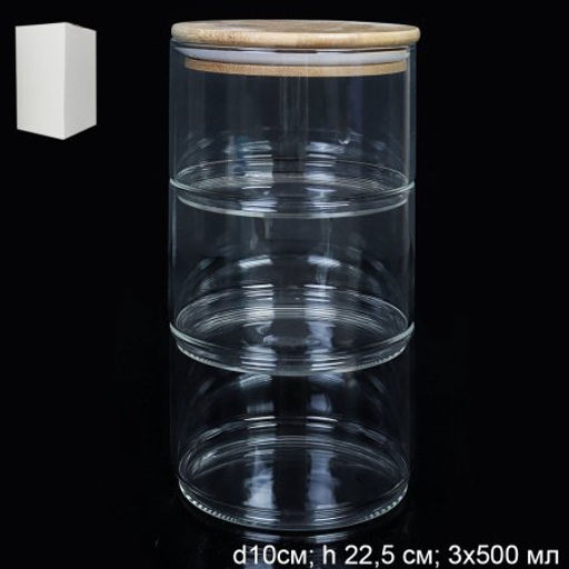 Банка для хранения 3-х ярусная бамбуковая крышка 8 см / LCSC33-8 /уп 40/