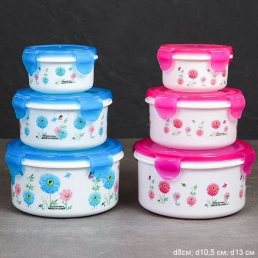 Салатник круглый 3 штуки с крышками / 124 /уп 84/ 190, 460, 850 мл