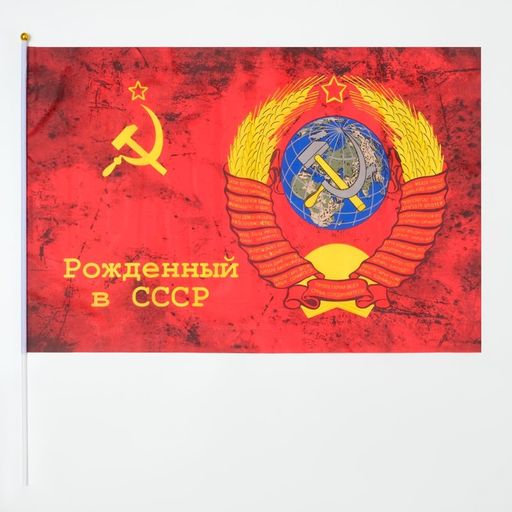 Флаг 9 Мая "Рожденный в СССР", 60 х 90 см, полиэфирный шелк, с древком