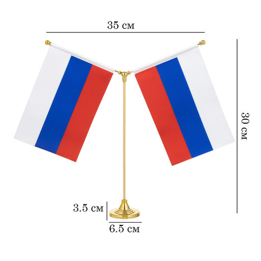 Флагшток настольный с двумя флажками 21 х 14 см, круг 6.5 х 3.5 см, 23 х 30 см, золото