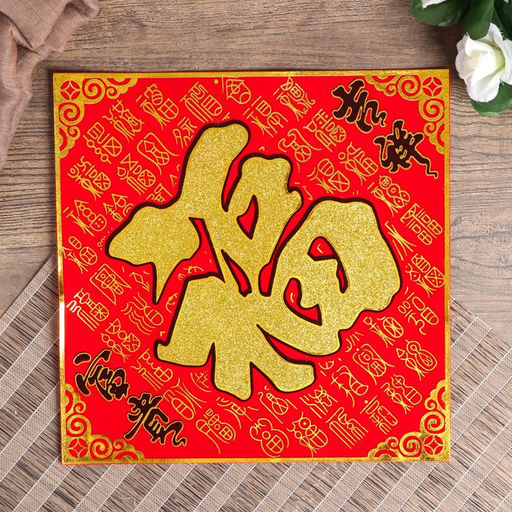 Цена за 2 шт. Салфетка денежная 25х25 см "Иероглиф Счастье" блёстки