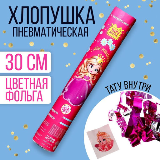 Хлопушка пневматическая С днём рождения 30 см, тату внутри