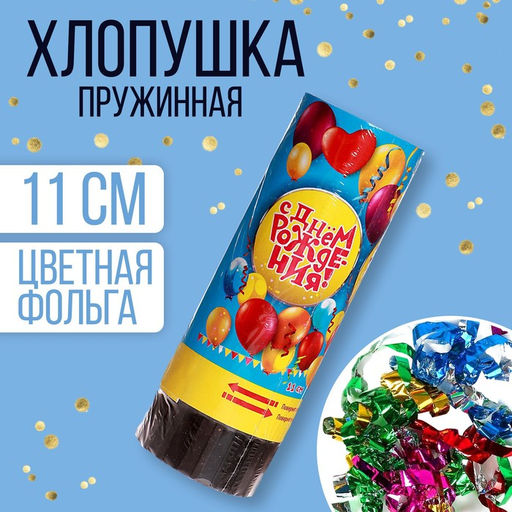 Цена за 24 шт. Хлопушка пружинная С Днём Рождения, шарики, конфетти, фольга, серпантин, 11см