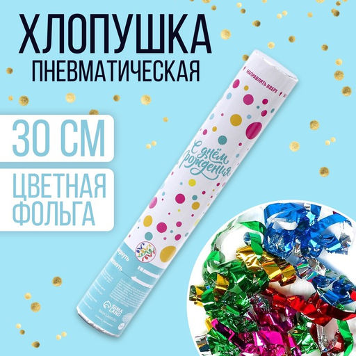Хлопушка пневматическая С днём рождения цветная 30 см