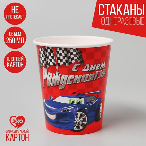 Цена за 10 шт. Стакан бумажный С днём рождения, тачка, 250 мл