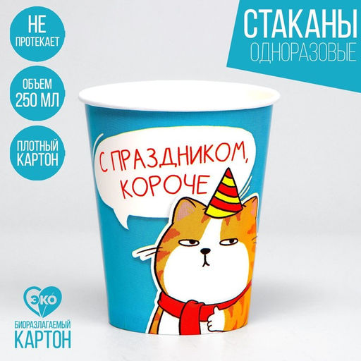 Стакан бумажный С праздником, набор 6 шт, 250 мл