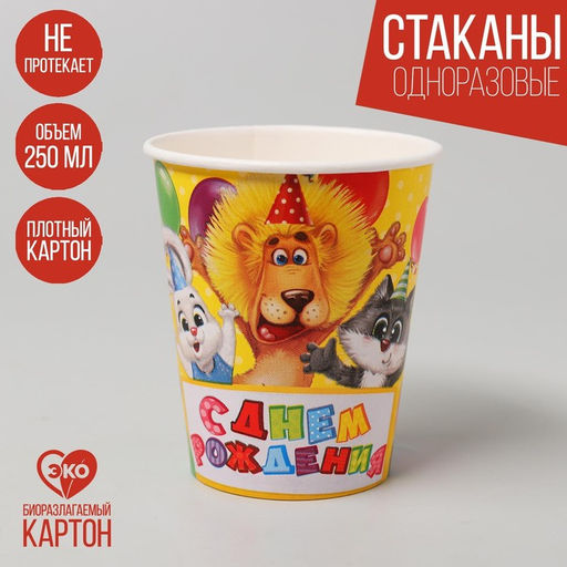 Цена за 10 шт. Стакан бумажный С днём рождения, весёлая компания, 250 мл