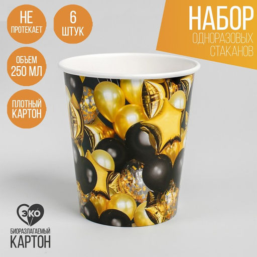 Стакан бумажный Чёрное золото. Шары, в наборе 6 шт.