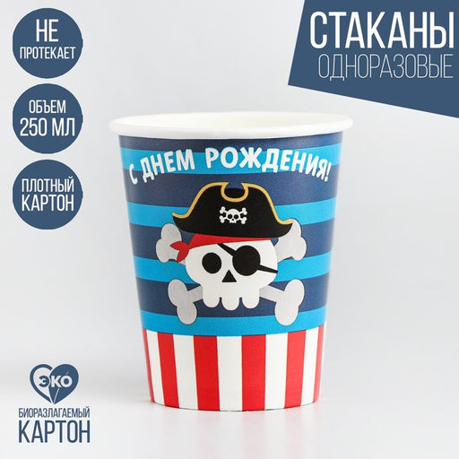 Цена за 10 шт. Стакан бумажный Пират, 250 мл