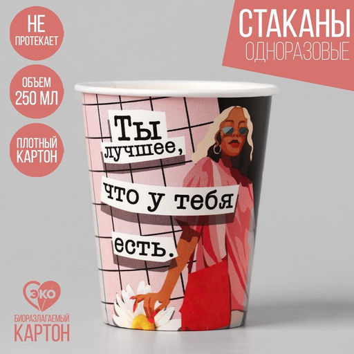 Цена за 10 шт. Стакан бумажный Ты лучшая, 250 мл, однослойный