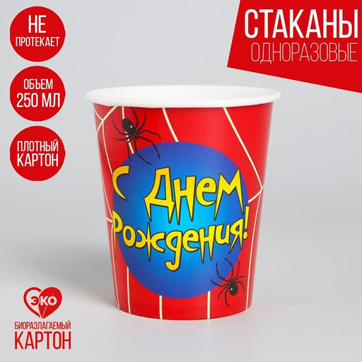Набор бумажных стаканов С днём рождения, паутинка, 250 мл, 6 шт.