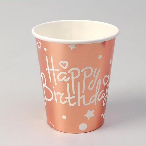 Стаканы бумажные С днём рождения, набор, 6 шт., цвет бронза