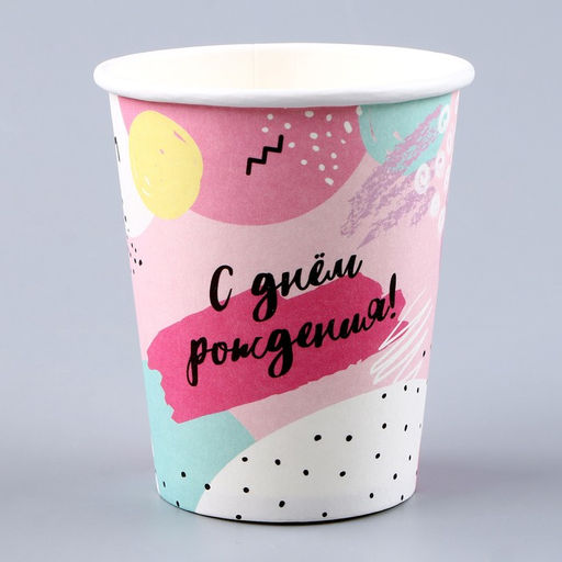 Цена за 10 шт. Стакан бумажный С днём рождения, 250 мл