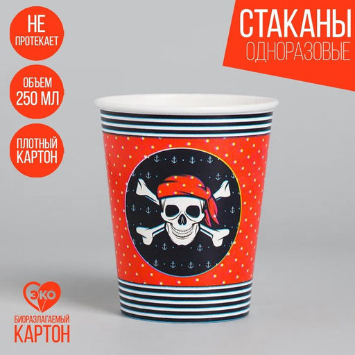 Цена за 10 шт. Бумажный стакан Пиратский, 250 мл